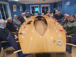 Et nesten fullsatt medlemsmøte avsluttet tradisjonen tro med kaffe og bløtkake.