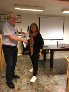 Hun takket for seg, og overrakte presidentkjede og blomster til innkommende president Ragnhild Hauglum og til Berit Olberg som har lovet å stille som backup for Ragnhild i påkommende tilfelle. Klubben har driftige og dyktige damer i sin midte!