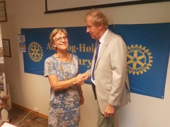 Så var nok et Rotary-år til ende! Evy takket for seg med å minnes Mentz Helbostad som gikk bort i løpet av året, og berømmet hans engasjement og innsats i klubben, ikke minst rundt fortet. Klubben har i hennes år fått hele fem nye medlemmer, og har en god og sunn økonomi. Evy roste medlemmene for godt engasjement og et spesielt godt klubbmiljø hvor det er mulig å lufte ulike meninger.