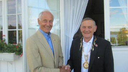 Arnt Astrup (t.v.) fra Rømskog overtar som president for året 2013-2014 etter Egil Nilsen Arnt er fortskandidat og representerer yrket skogsadministrasjon i Rotary. Han var med å chartre klubben i 1975, og har tidligere vært president 1979-19