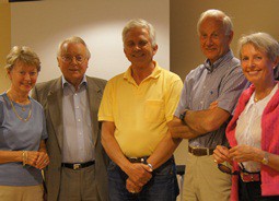 Tidl. ambassadør Terje Johannessen holdt et interessant foredrag om Norges situasjon og forsvarspolitikk før 2.verdenskrig. Vårt "ønske" om å være nøytral ble dengang ikke hørt. Norges lange kystlinje er strategisk viktig i enhver europeisk konfliktsituasjon. Hvis vi ikke tar vare på og lærer av fortiden, da vil vi før eller senere måtte gjøre det om igjen! Her er Terje Johannessen og noen av de fremmøtte deltakerne. Fra venstre; Anne B.Astrup fra Oslo Vest Rotary Klubb, Terje Johannessen, Aurskog-Høland Rotaryklubb's president Halvor Tønsberg og ekteparet Astrup.