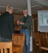 Tirsdag 29.november 2011 hadde klubben besøk av Roger Hansen (til høyre) som holdt et interessant foredrag om Førstehjelp. Han kommer tilbake og fortsetter foredraget i januar 2012. Her med Egil Nilsen (til venstre) som vikarierende President.